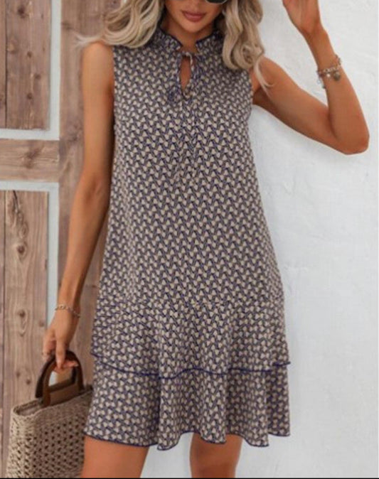 Fashion Bohemian Printed V-Neck Lace-Up Dress