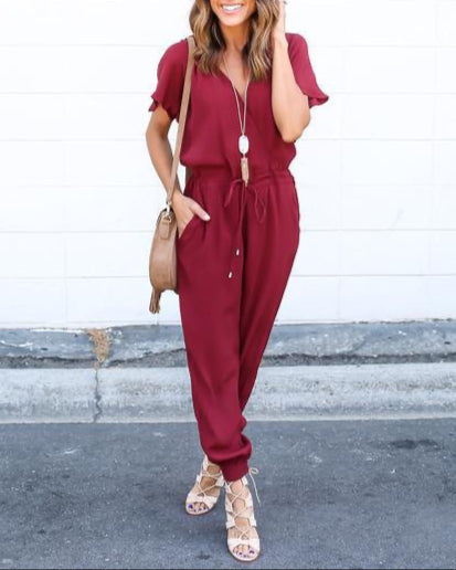 Fashion Button V-Neck Jumpsuit