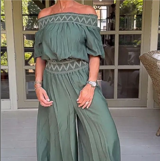 Fashion Off-Shoulder Wide-Leg Jumpsuit