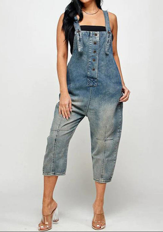 Fashion Denim Jumpsuit With Shoulder Straps