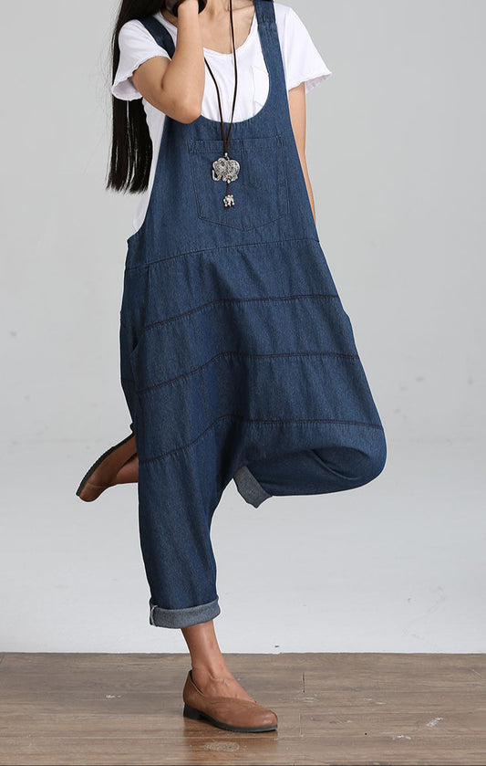 Fashion Denim Suspender Pants