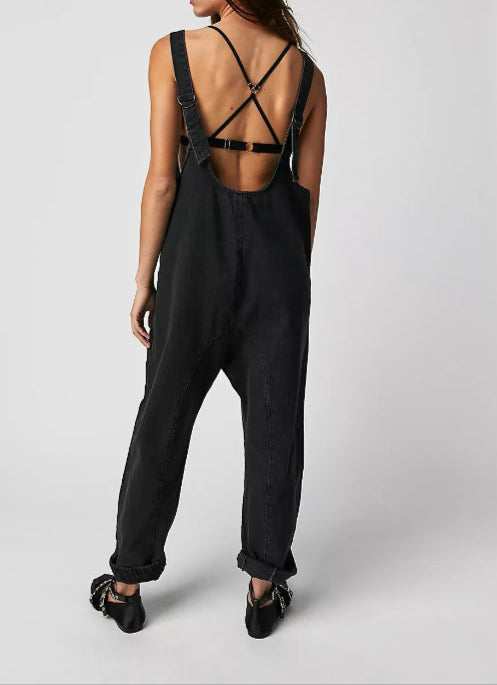 Fashion Solid Color Suspender Jumpsuits