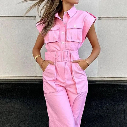 Fashion Sleeveless Zipper Pocket Casual All-Match Jumpsuit