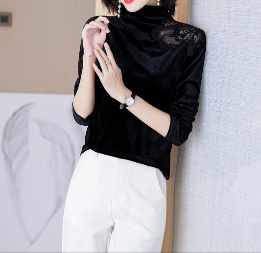Fashion Lapel Velvet Long-Sleeved Shirt