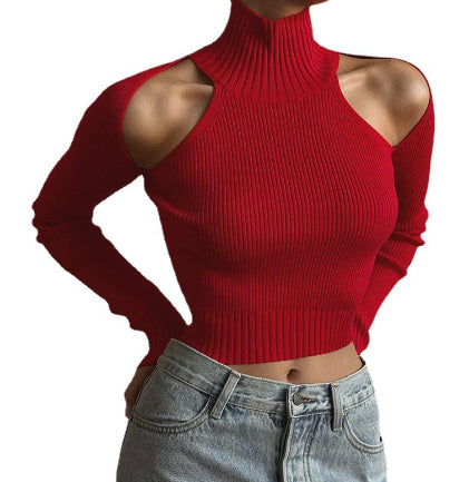 Fashion High Neck Shoulder Cut Out Long Sleeve Shirt