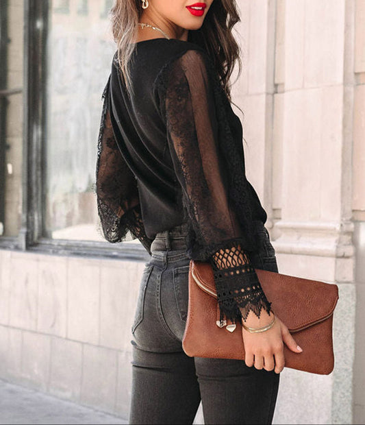Fashion Chiffon Casual V-Neck Buttoned Knotted Shirt