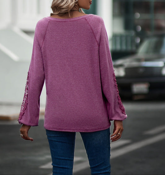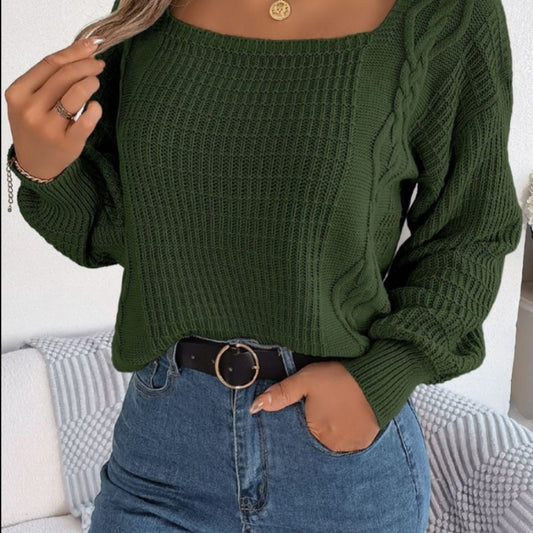 Fashion Hollow-Out Off-Neck Off-The-Shoulder Lantern Sleeve Sweater