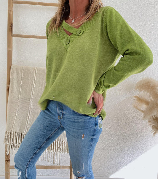 Fashion V-Neck Decorative Diagonal Buckle Sweater