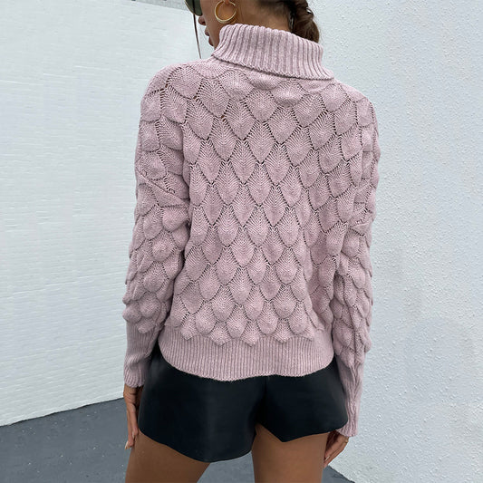Fashion Retro Patchwork Contrast Color Turtleneck Sweater