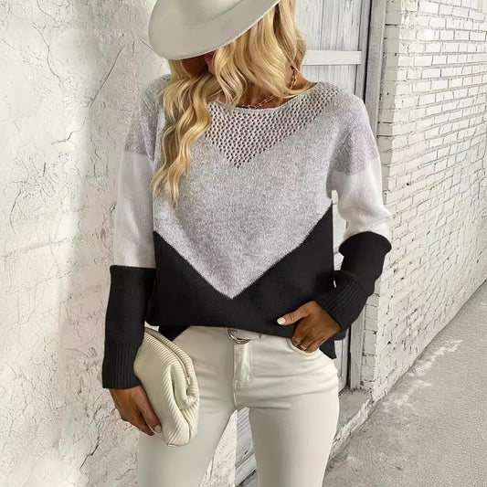 Fashion V-Neck Contrast Color Pullover Knitwear Sweater