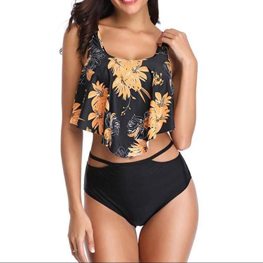 Fashion Polka Dot Printed Tulle Covering Belly Swimsuit