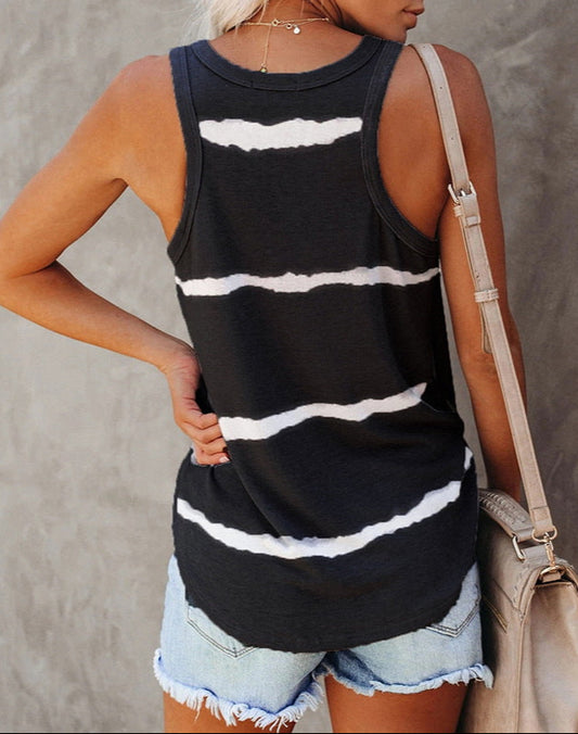 Fashion Round Neck Sleeveless Striped T-Shirt