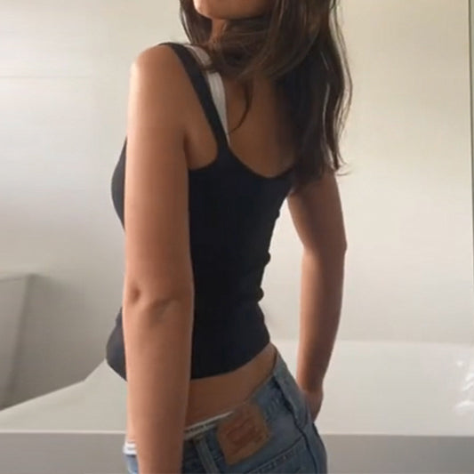 Fashion Contrast Patchwork Slim Strap Crop Top