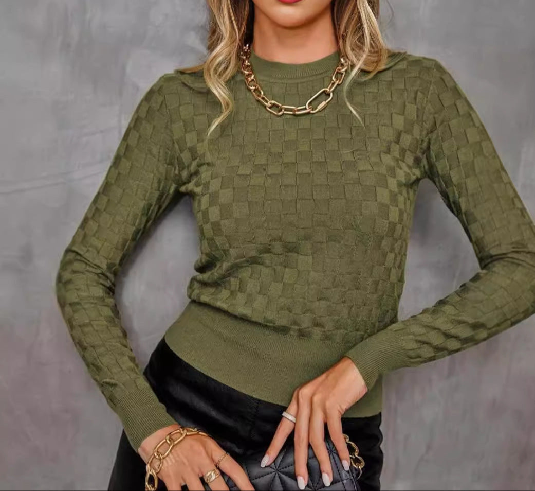 Fashion Round Neck Waffle Long Sleeve Sweater