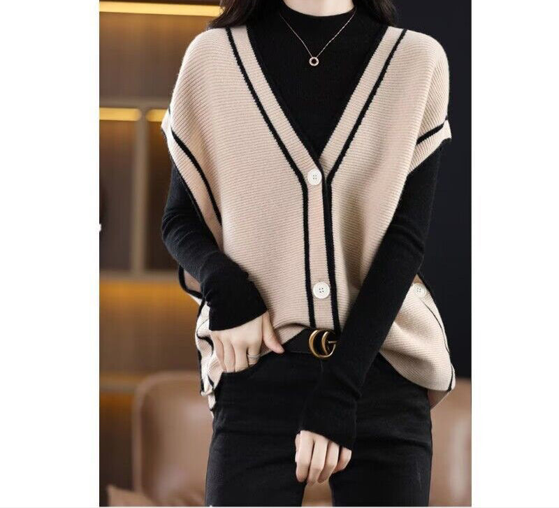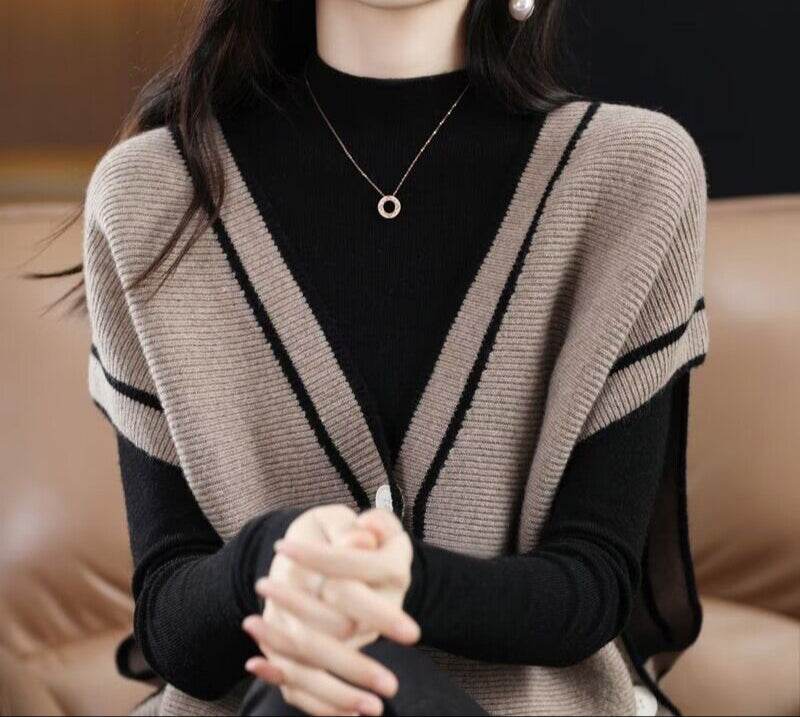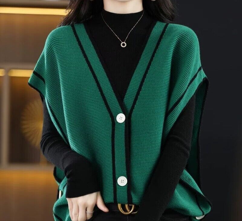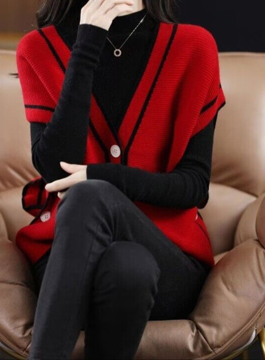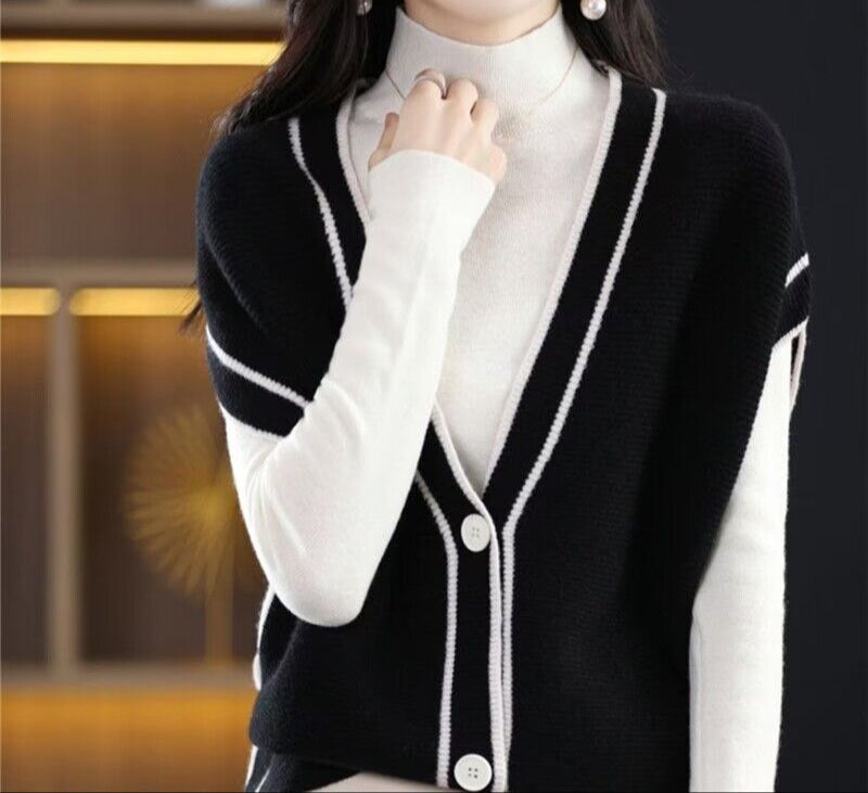 Fashion Single-Breasted Color Matching Sleeveless Sweater